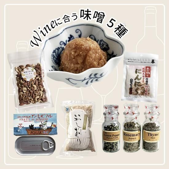 当店の「味噌ソムリエ」が選んだ、ワインに合う味噌とその味噌に合う食材をセットにしました。