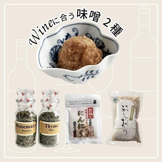 当店の「味噌ソムリエ」が選んだ、ワインに合う味噌とその味噌に合う食材をセットにしました。